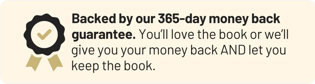 We’ll refund you your $4.99 and let you keep the book AND the bonuses free of charge, as a 'thank you' for giving it a try.