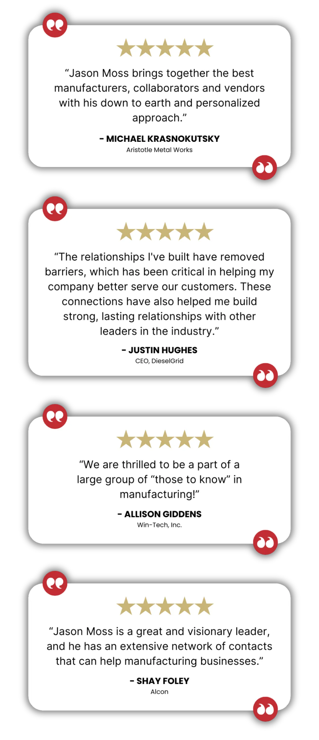 Manufacturing YOUR Network works by teaching you simple, repeatable habits that turn isolation into connection. Instead of collecting business cards, you’ll build a trusted circle of peers and partners who support you in challenges and open doors to new opportunities.